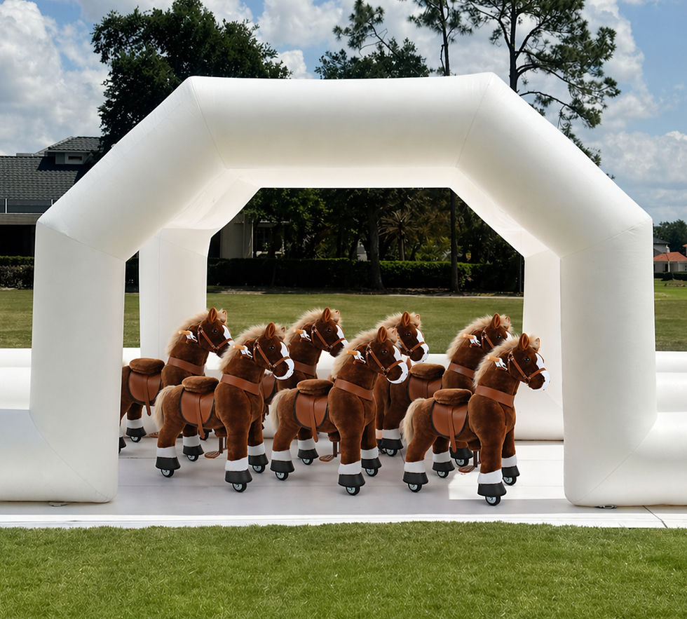 A softer, whimsical option for younger kids ages 3–7. Unicorns and ponies are perfect for fun little “races,” with ponies being a favorite for farm, rodeo, and cowboy-themed events. Designed for smooth, flat surface setups (not suitable for grass).
